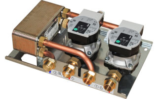 GRUPPO DI PRODUZIONE ISTANTANEA DI ACQUA CALDA SANITARIA (ACS) CON REGOLAZIONE ELETTRONICA E CONTROLLO TEMPERATURA DI RITORNO DEL CIRCUITO PRIMARIO. FUNZIONE TERMOSTATO. SPECIFICO PER POMPE DI CALORE
