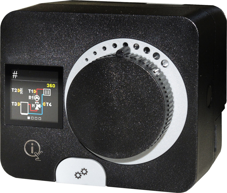 Moderna centralina climatica con servomotore integrato. Consente, attraverso la scelta della curva climatica desiderata una precisa regolazione del circuito miscelato ottimizzando il consumo energetico.