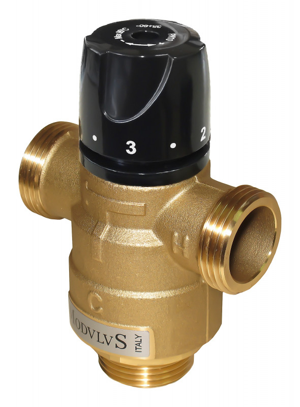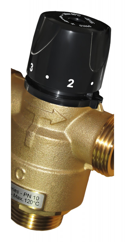 Miscelatore termostatico con elevate prestazioni per applicazioni di riscaldamento (radiatori o a pavimento), raffrescamento, acqua potabile e solare termico.