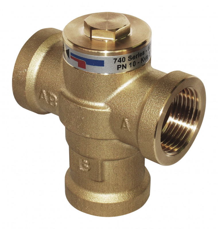Valvola termica anticondensa con controllo termostatico della temperatura di ritorno verso generatori di calore a combustibile solido.