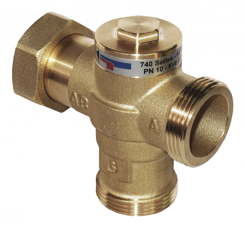 Valvola termica anticondensa con controllo termostatico della temperatura di ritorno verso generatori di calore a combustibile solido.