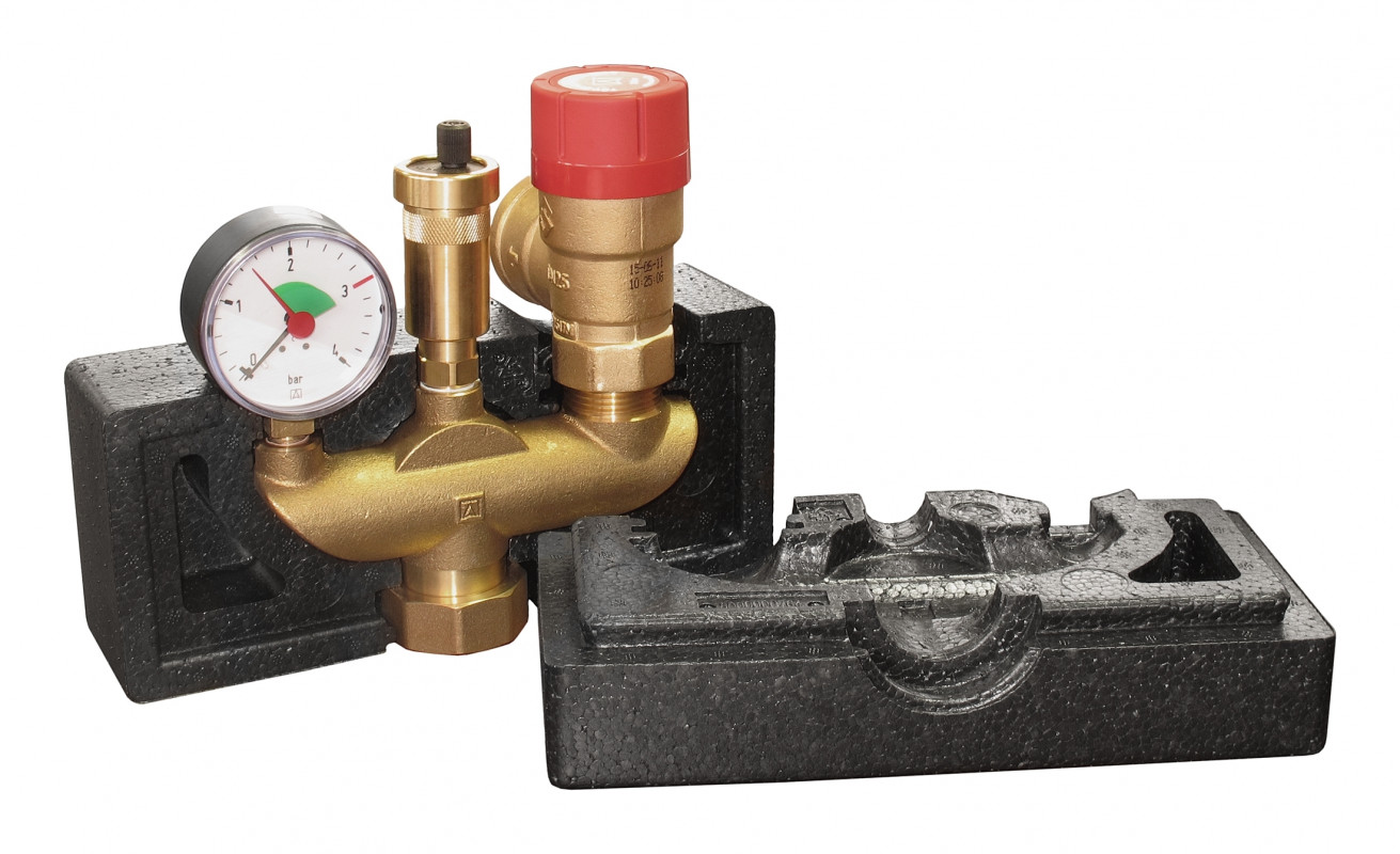 Gruppo di sicurezza per sistemi di riscaldamento a circuito chiuso come da norma EN 12828 con potenza fino a 200 kW.