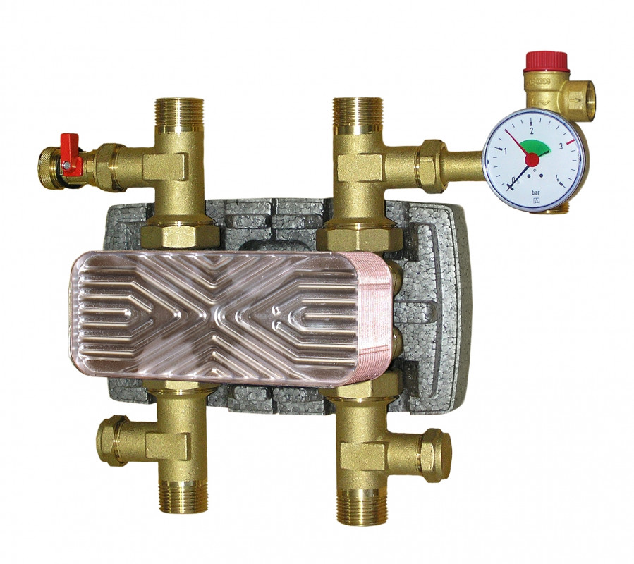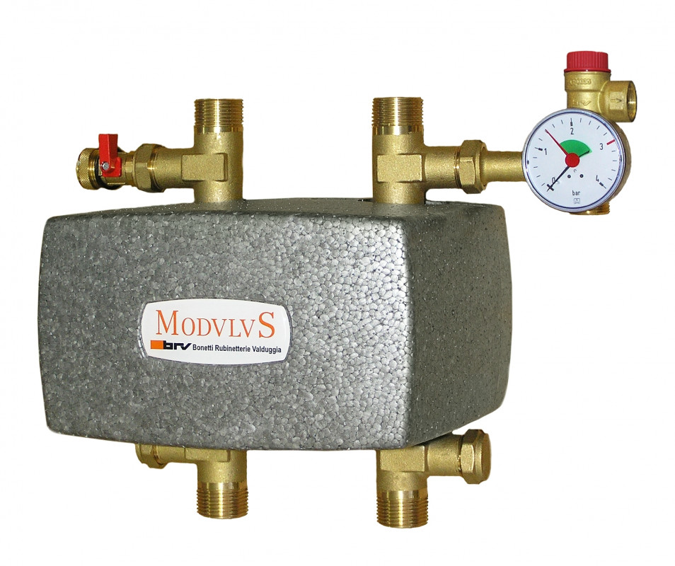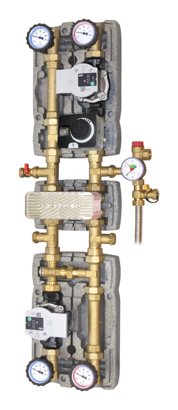 Modulo di scambio termico isolato per circuiti idraulici, in ottone stampato.