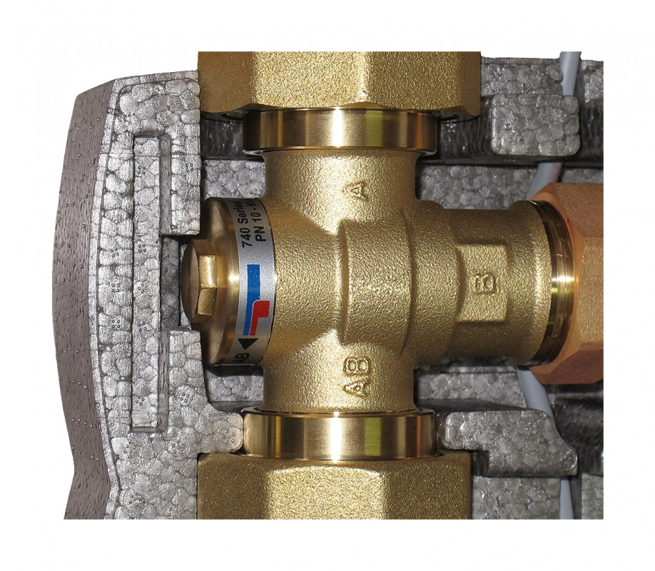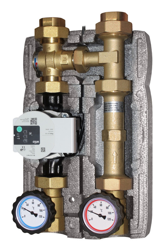 MODULO A 2 VIE CON VALVOLA TERMICA DI RICIRCOLO PER CALDAIE A COMBUSTIBILE SOLIDO