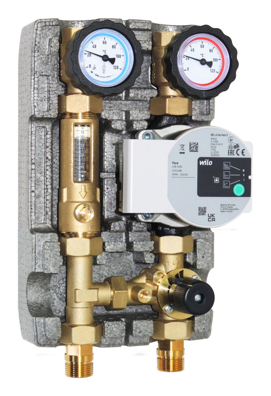 MODULO A 2 VIE CON VALVOLA MISCELATRICE A 3 VIE CON BY-PASS INTEGRATO E MISURATORE DI FLUSSO