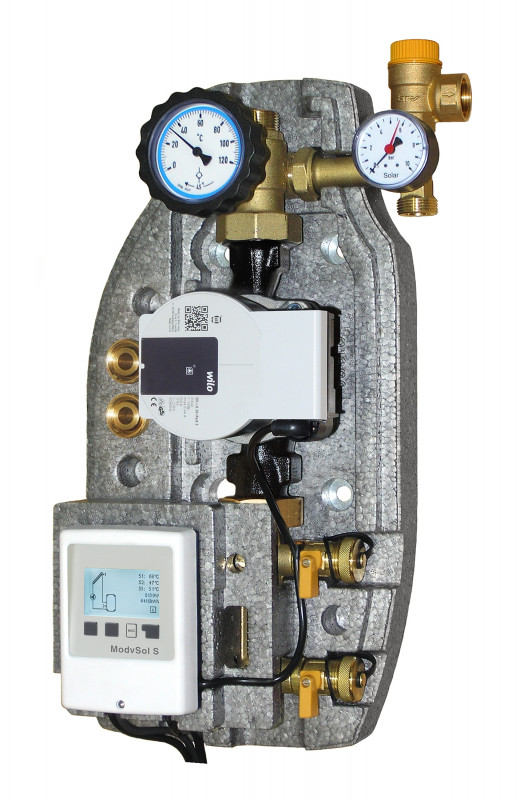 Il gruppo con circolatore solare da 1” (180 mm), completamente montato e collaudato, consiste di: