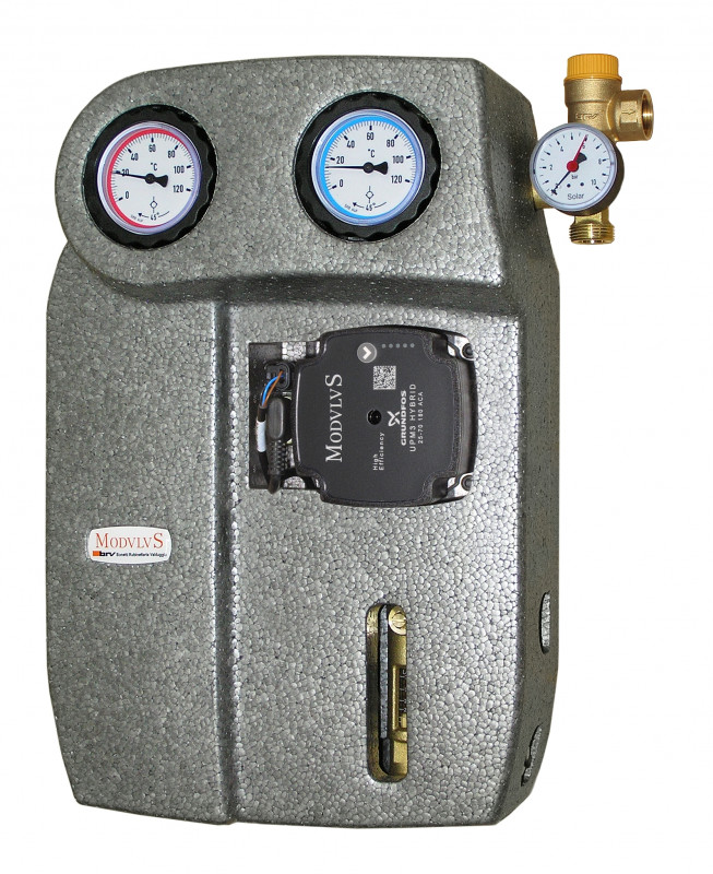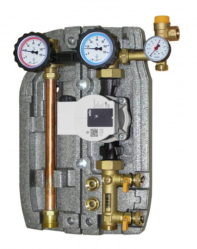 Il gruppo con circolatore solare da 1” (180 mm), completamente montato e collaudato, consiste di: