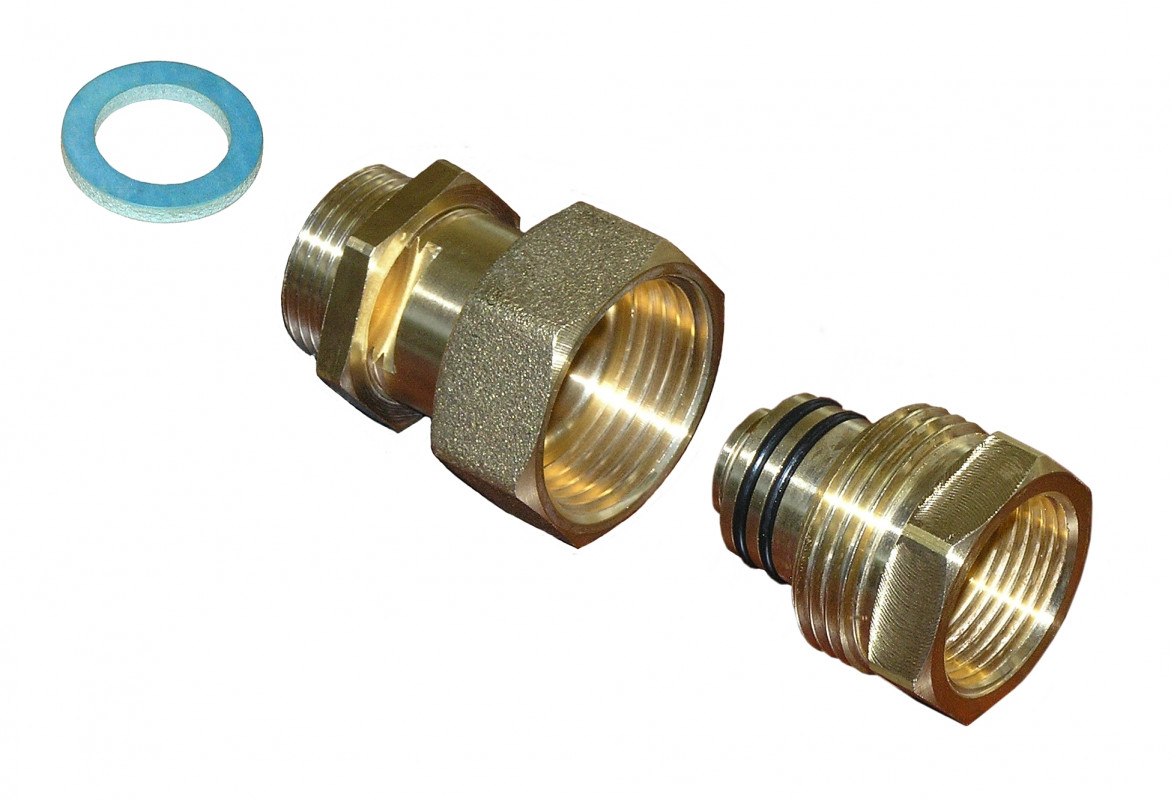 Set di collegamento del vaso di espansione al circuito. Grazie alle due valvole di non ritorno, è possibile interrompere la connessione evitando lo svuotamento dell’impianto e del vaso stesso.