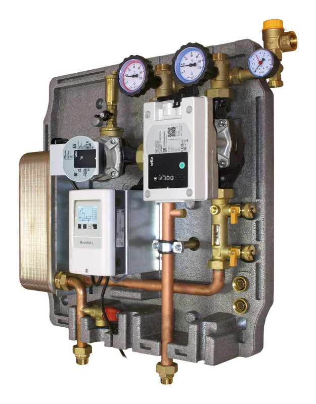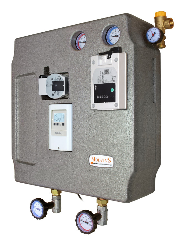 Modulo compatto completamente assemblato per la consegna del calore prodotto da un impianto solare con modalità High Flow o Low Flow. Applicabile in abbinamento a 1 accumulo tampone (puffer).