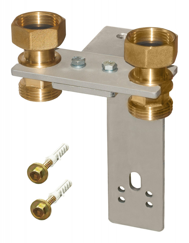 Grazie alla staffa di fissaggio a muro e alla piastra di supporto è possibile sostenere il modulo idraulico ad una distanza di 100 oppure 150 mm (fra il muro e l’asse delle tubazioni).