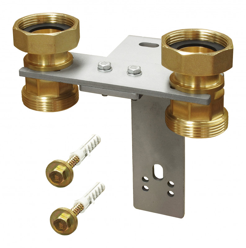 Grazie alla staffa di fissaggio a muro e alla piastra di supporto e possibile sostenere il modulo idraulico ad una distanza di 100 oppure 150 mm (fra il muro e l’asse delle tubazioni).